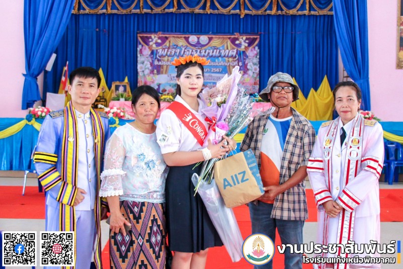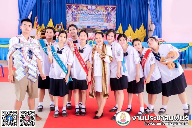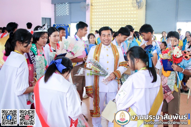 และกล่าวให้โอวาทกับนักเรียน เนื่องในโอกาสสำเร็จการศึกษา มีพิธีบายศรีสู่ขวัญ ผูกข้อมือให้กับนักเรียนที่สำเร็จการศึกษา เพื่อความเป็นสิริมงคล พร้อมทั้งให้นักเรียนที่สำเร็จการศึกษา ได้กล่าวแสดงความรู้สึก ความอาลัยต่อสถาบัน และความรู้สึกต่อคุณครูผู้มีพระคุณ ณ อาคารหอประชุมเบญจมาศ โรงเรียนแก้งเหนือพิทยาคม ตำบลแก้งเหนือ อำเภอเขมราฐ จังหวัดอุบลราชธานี