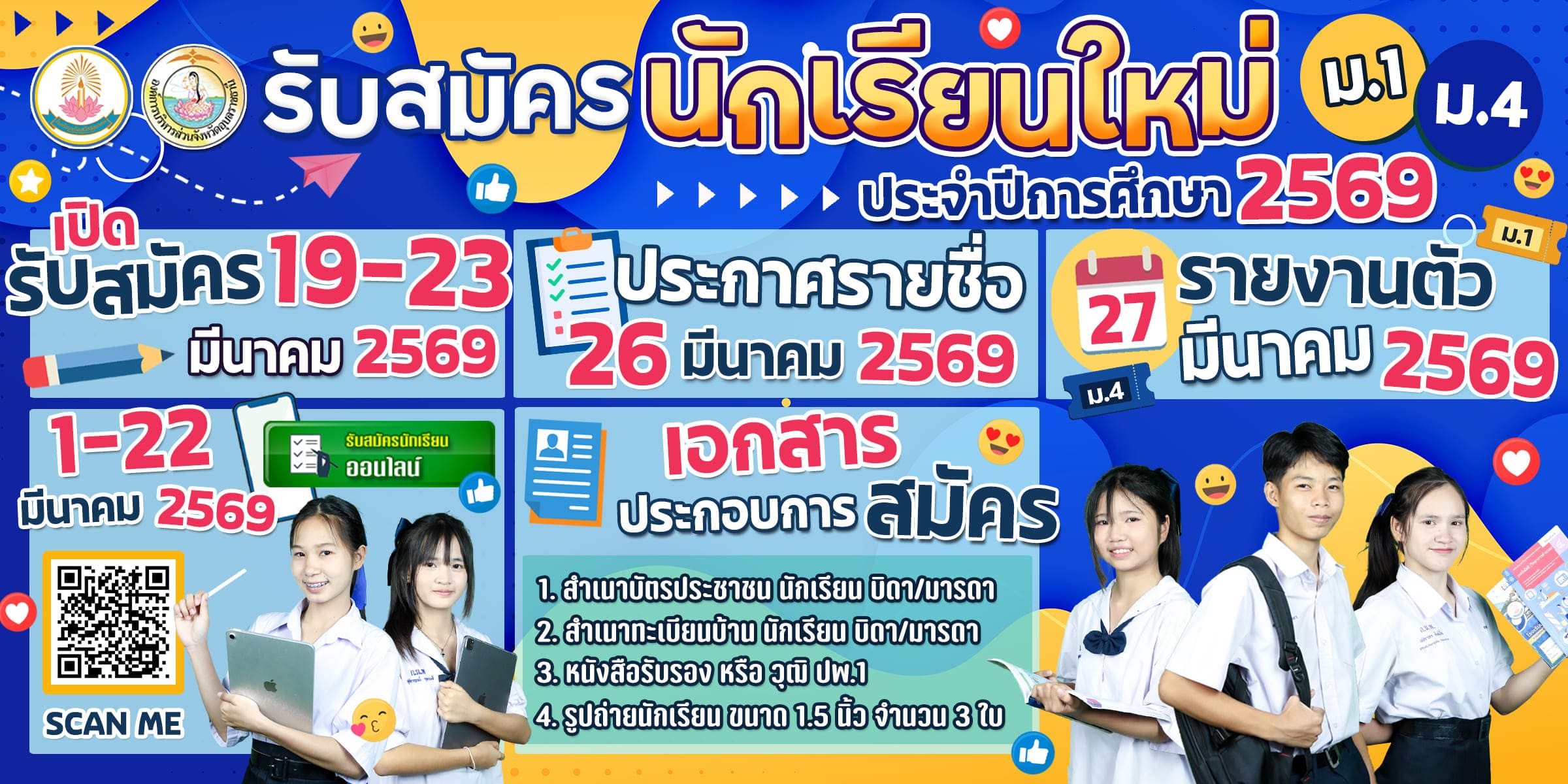 ประชาสัมพันธ์ การรับสมัครนักเรียน ประจำปีการศึกษา 2569