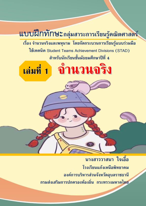 ชื่อผลงาน : รายงานการพัฒนาแบบฝึกทักษะกลุ่มสาระการเรียนรู้คณิตศาสตร์ เรื่องจำนวนจริงและพหุนาม โดยจัดกระบวนการเรียนรู้แบบร่วมมือใช้เทคนิค Student Teams Achievement Divisions (STAD) สำหรับผู้เรียนชั้นมัธยมศึกษาปีที่ 4