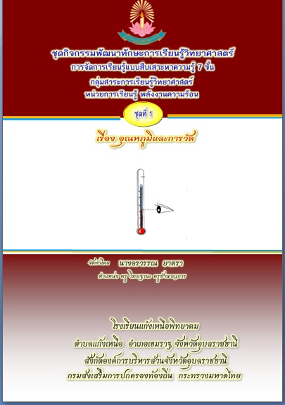 ชื่อผลงาน : ชุดกิจกรรมเพื่อพัฒนาทักษะการเรียนรู้วิทยาศาสตร์ เรื่อง พลังงานความร้อน