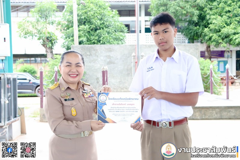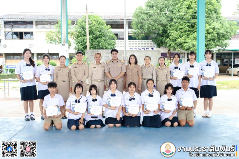 • วันที่ 17 พฤศจิกายน 2568 นางอุไรพร พิพัฒน์พร ผู้อำนวยการสถานศึกษา พร้อมด้วย นายรมย์รวินท์ เชิดชู รองผู้อำนวยการสถานศึกษา มอบเกียรติบัตรให้กับนักเรียนที่มีผลการเรียนยอดเยี่ยม 10 อันดับ ในระดับชั้นมัธยมศึกษาปีที่ 1 ถึงชั้นมัธยมศึกษาปีที่ 6 ภาคเรียนที่ 1 ปีการศึกษา 2568 ณ อาคารกีฬาอเนกประสงค์ พระภาวนาสุตาภิรัต โรงเรียนแก้งเหนือพิทยาคม ตำบลแก้งเหนือ อำเภอเขมราฐ จังหวัดอุบลราชธานี
